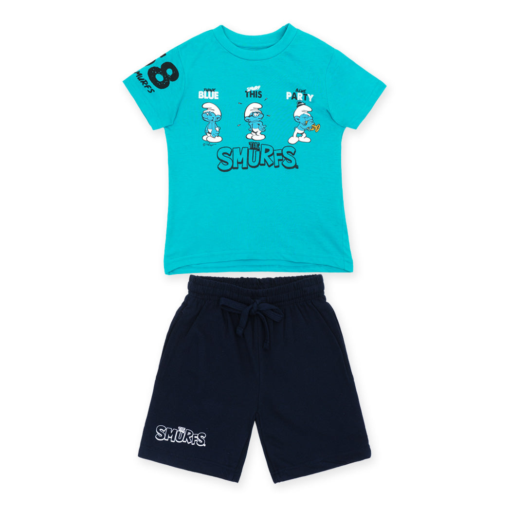 חליפת בנים בטורקיז וכחול נייבי עם הדפס דרדסים