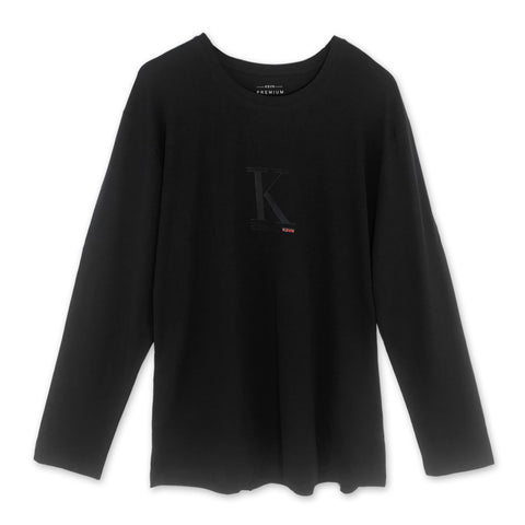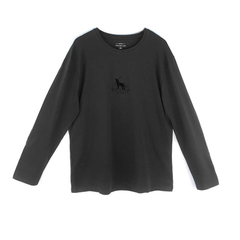 חולצת לוני טונס שחורה עם אפליקציה רקומה גברים