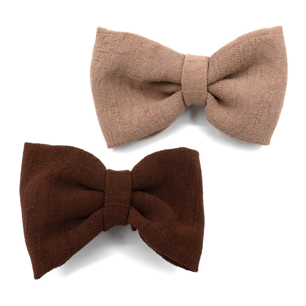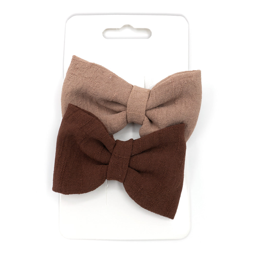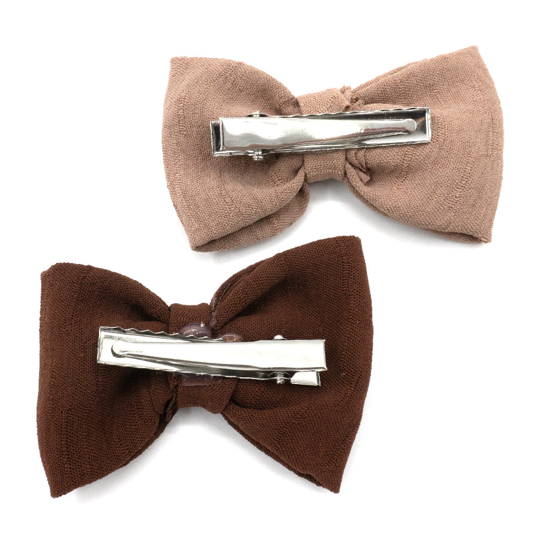 זוג סיכות שיער חומות מבד עם תפס תנין מתכתי