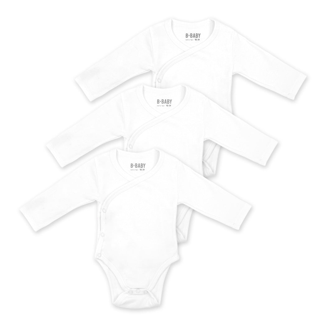 מארז 3 בגדי-גוף מעטפת פלנל לבן לתינוקות