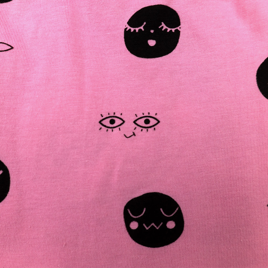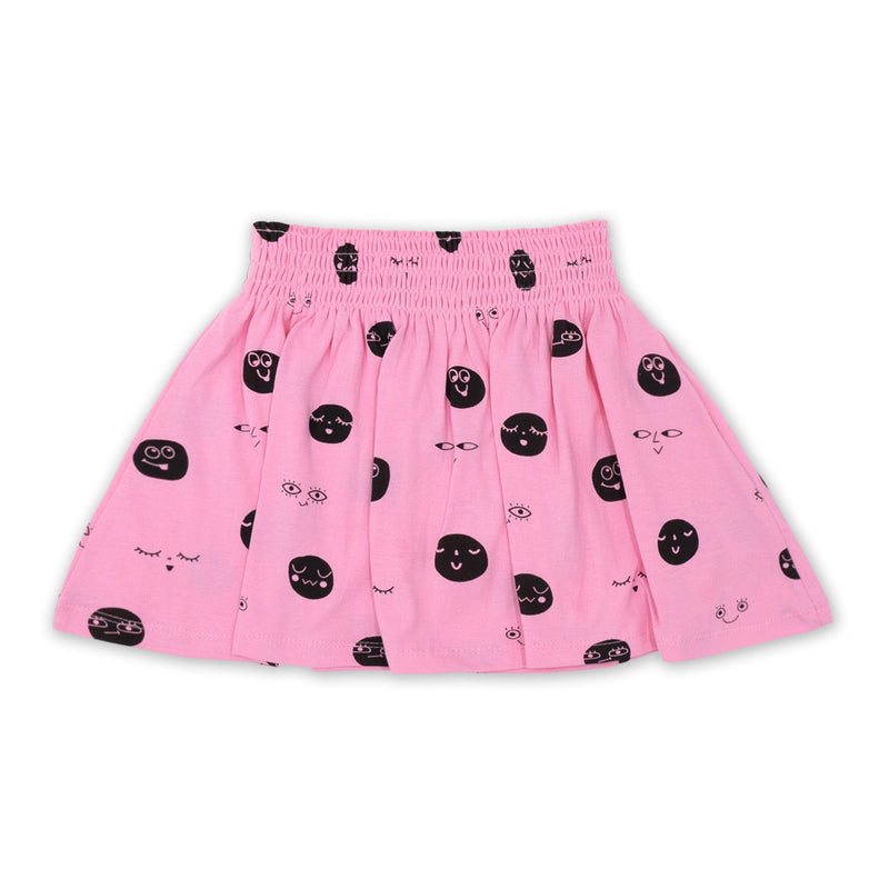 חצאית כיווצים ורודה הדפס פרצופים בנות