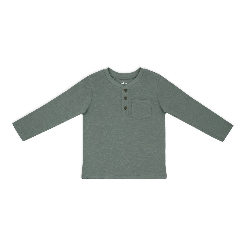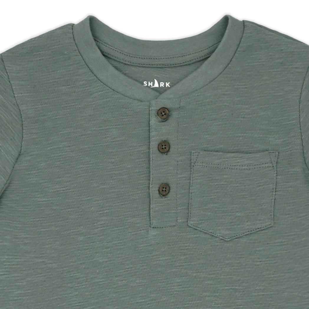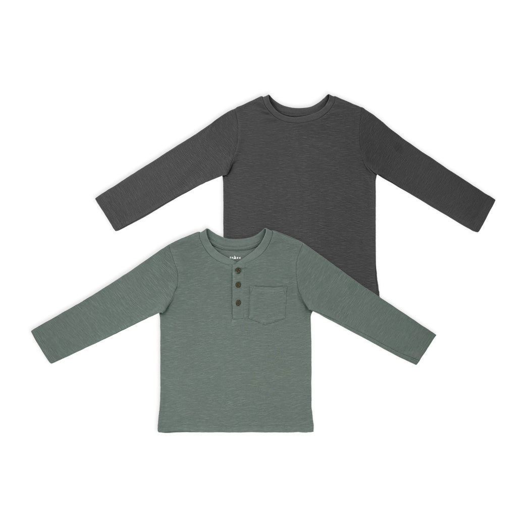 שתי חולצות בנים מבד אותומן בגווני ירוק-זית ואפור-פלדה, עם ובלי כפתורים בצווארון