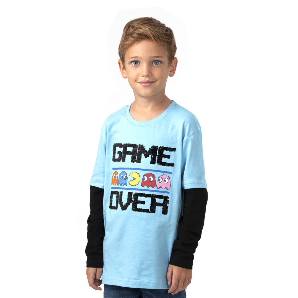 חולצת מעבר פאקמן Game Over עם פאייטים מתחלפים בנים