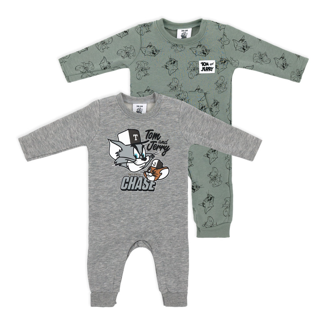 זוג אוברולים לתינוק עם סגירת לחצנים, עם ובלי כיס קדמי והדפסי טום וג'רי