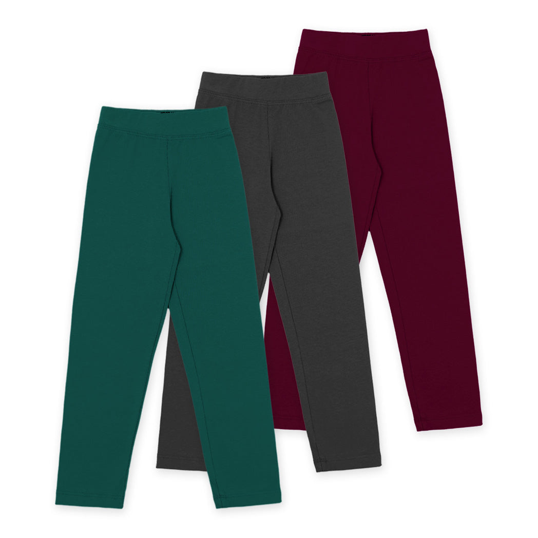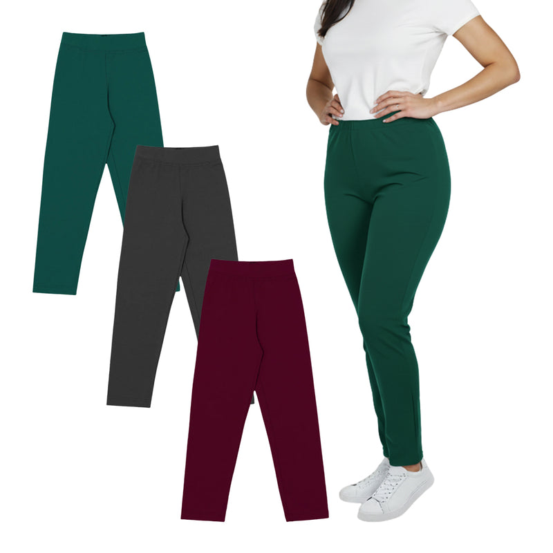 שלישיית טייץ נשים בייסיק ארוך בשלושה גוונים - בורדו-יין, אפור-פלדה וירוק-זית