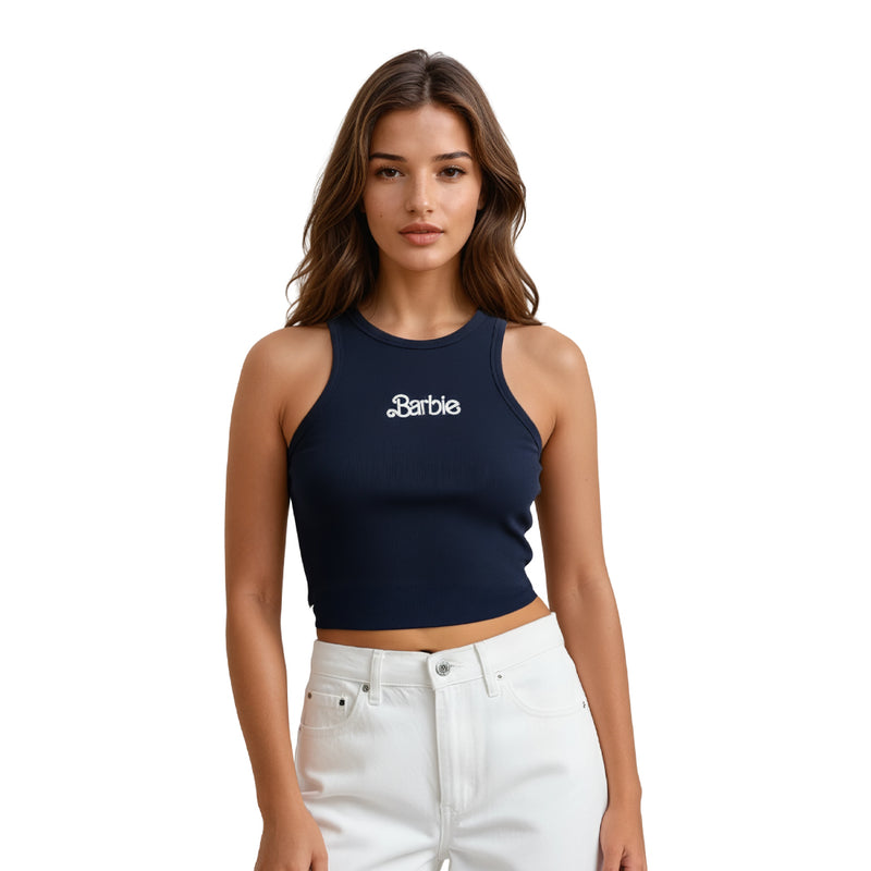 גופיית ריב כחולה רקומה לוגו Barbie נשים