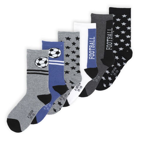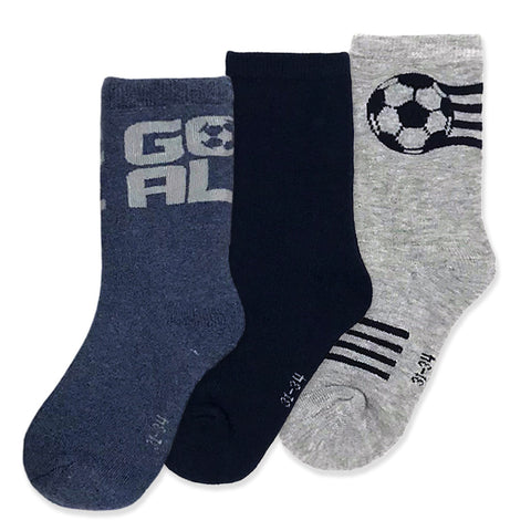 שלישיית גרבי בנים עבות בגובה סטנדרטי עם הדפסי כדורגל מגוונים