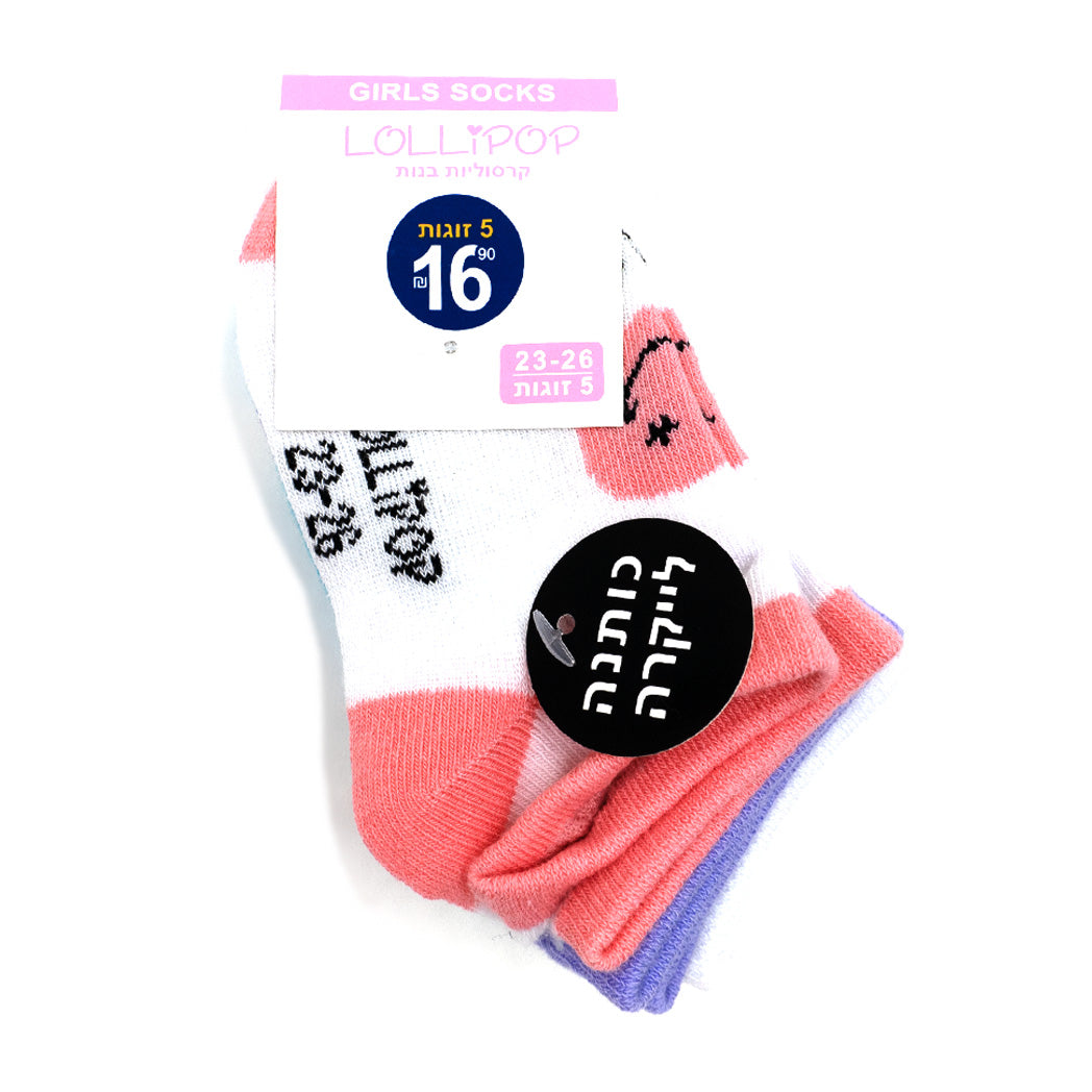 חמישיית זוגות גרביים קרסוליות לילדות בהדפסים מגוונים