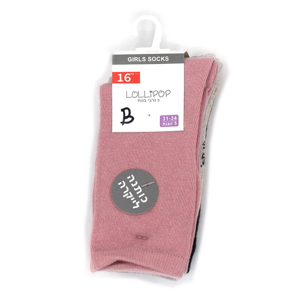 חמישיית זוגות גרבי בנות במארזי גוונים שונים