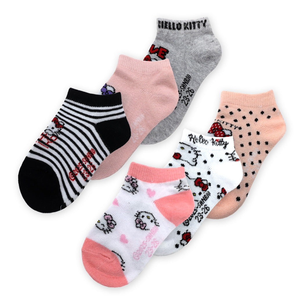 שישיית זוגות גרביים קרסוליות לילדות בהדפסי Hello Kitty