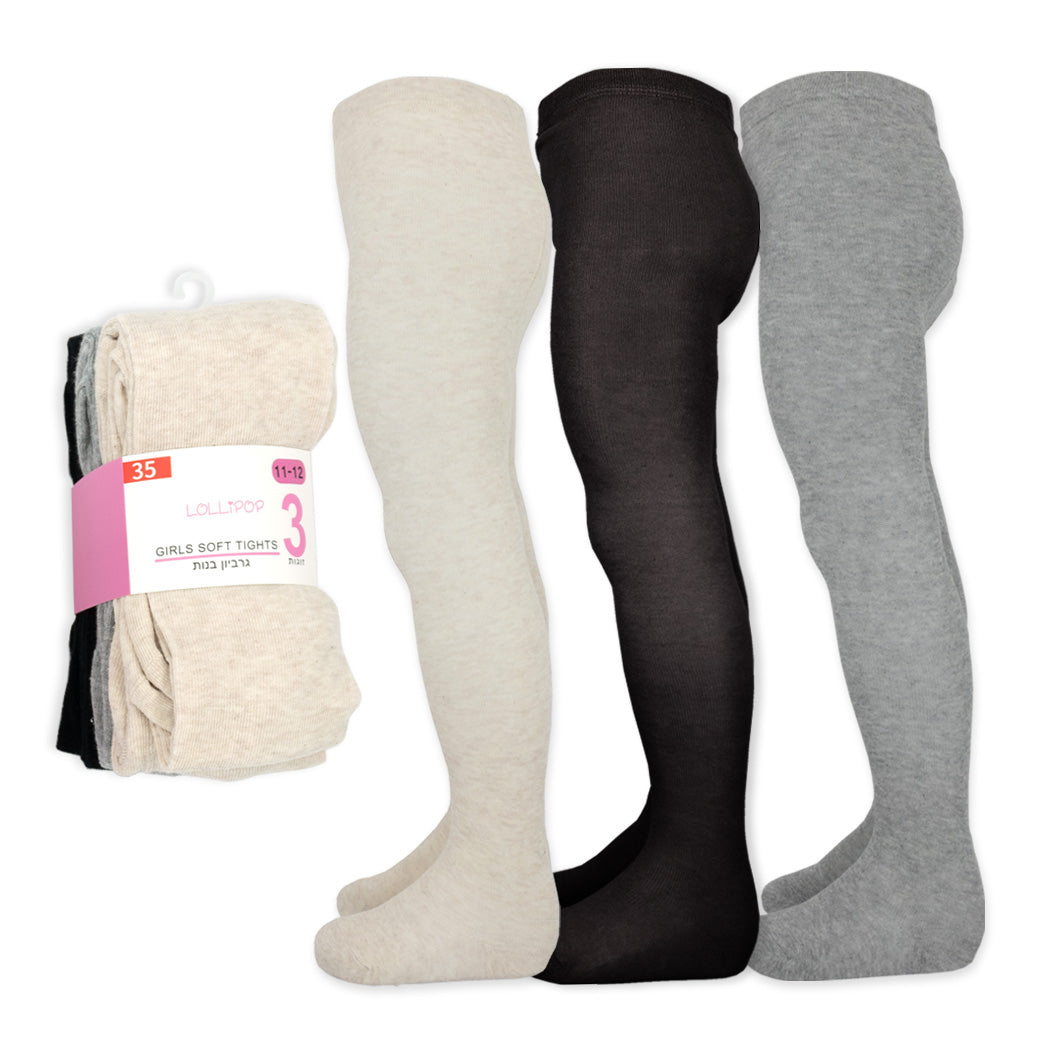 סט שלישיית גרבוני בנות במארזי גוונים שונים