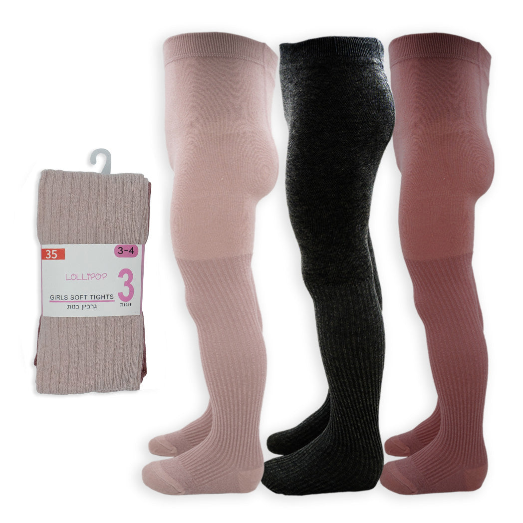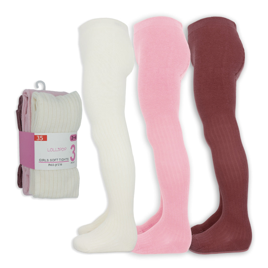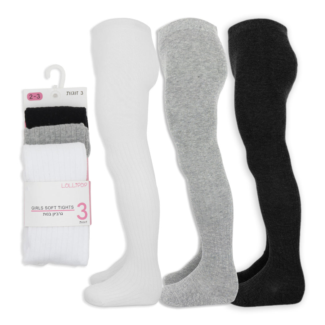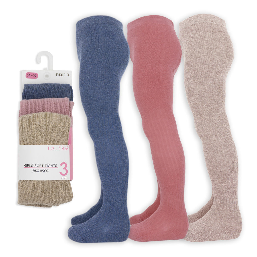 סט שלישיית גרבוני ריב בנות במגוון צבעים