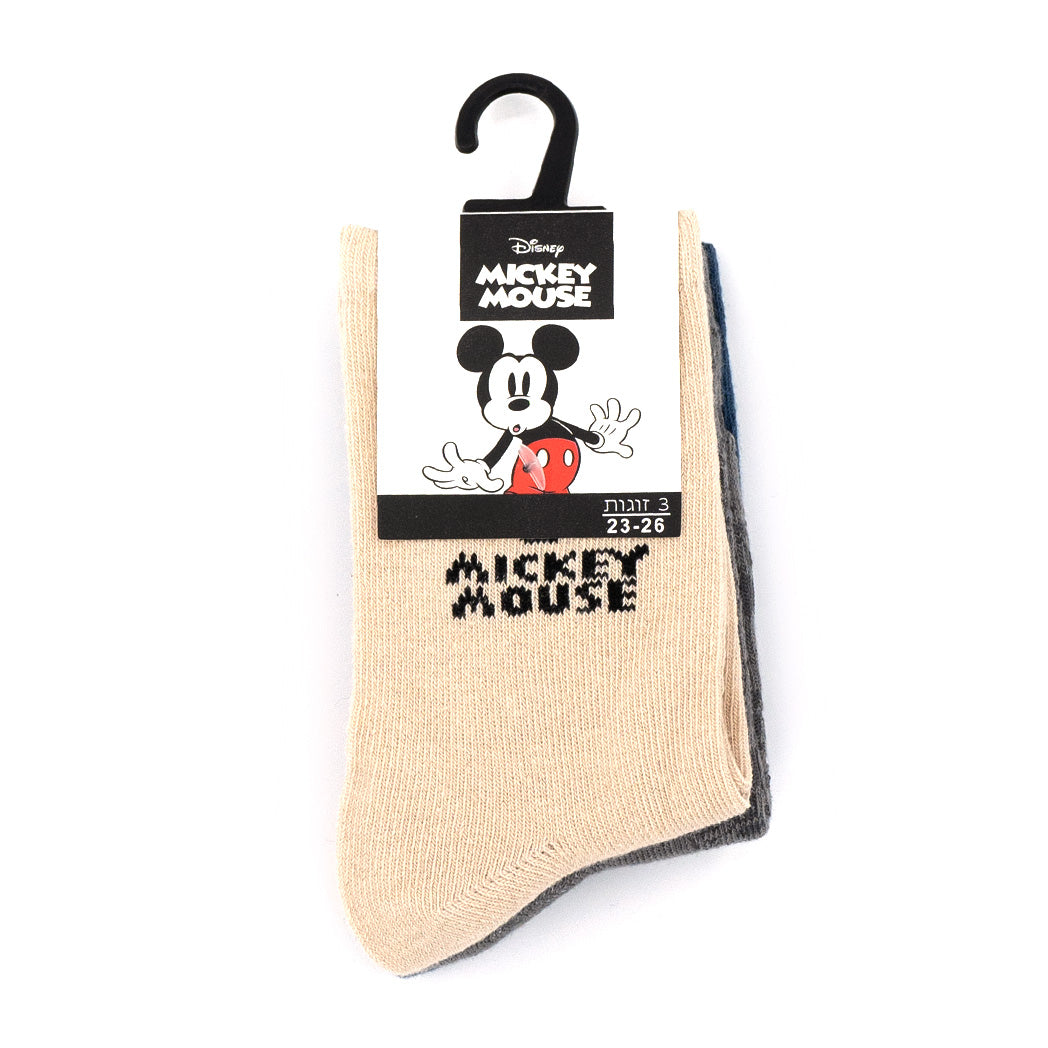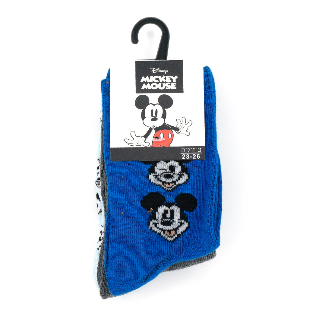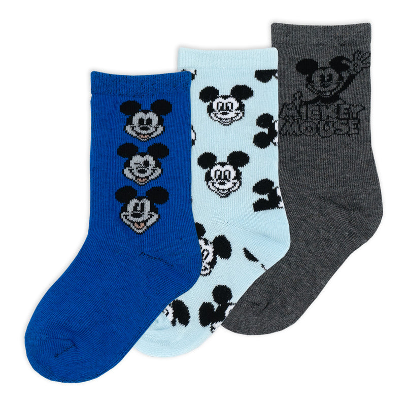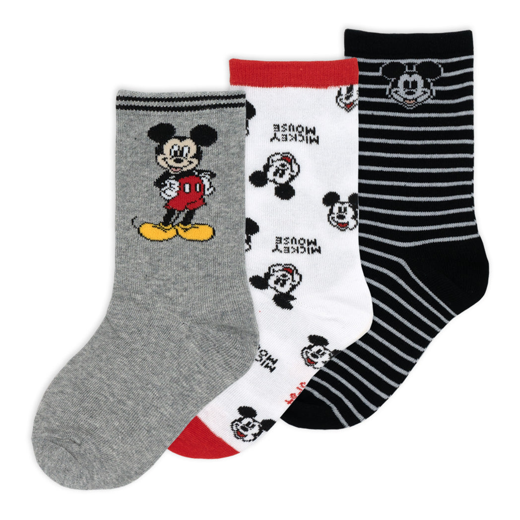 שלישיית גרבי בנים בגובה סטנדרטי עם הדפסי מיקי מאוס מגוונים