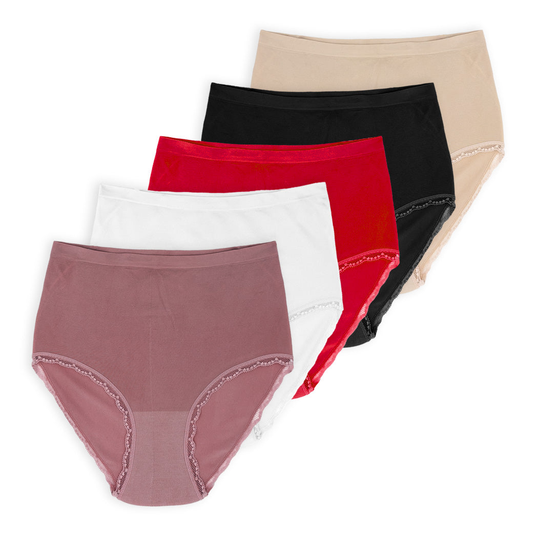 סט 5 תחתונים מחטבים גזרה גבוהה אל תפר נשים