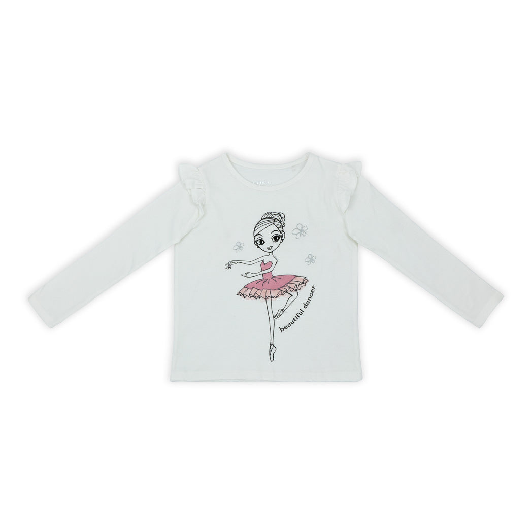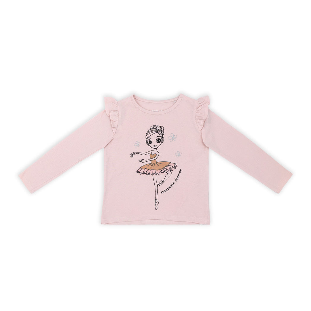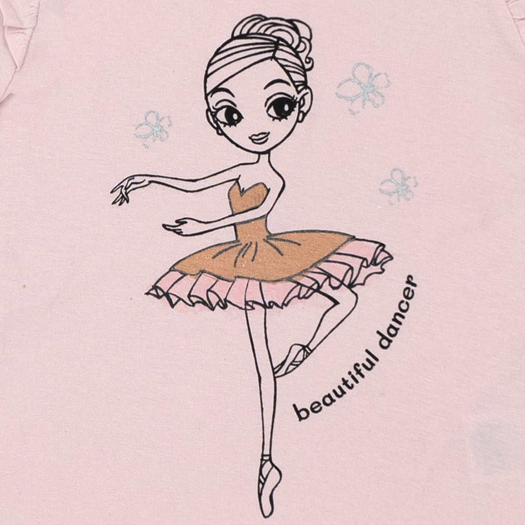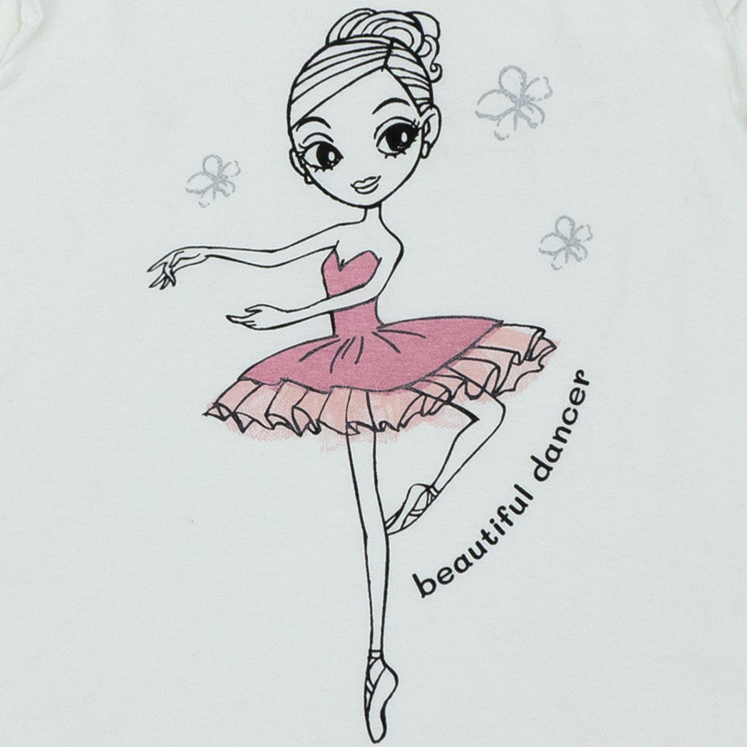 חולצת בנות דקה עם הדפס בלרינה בשני גוונים