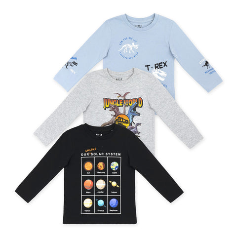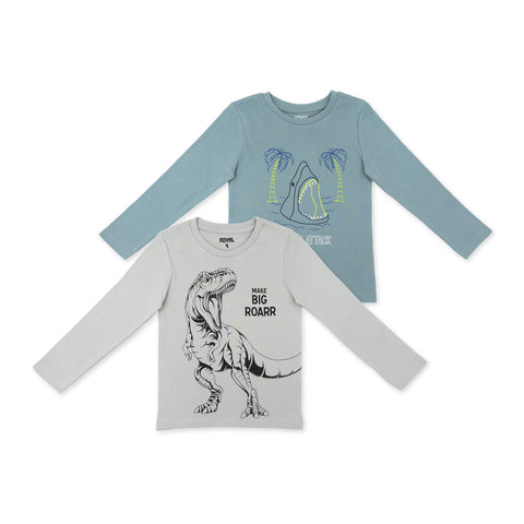 חולצות ילדים בשני גוונים עם הדפס ראש דינוזאור