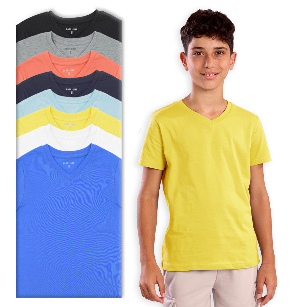 מארז 8 חולצות חלקות צווארון וי בנים