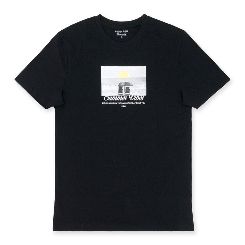 חולצת גברים שחורה עם הדפס צילום בחזה