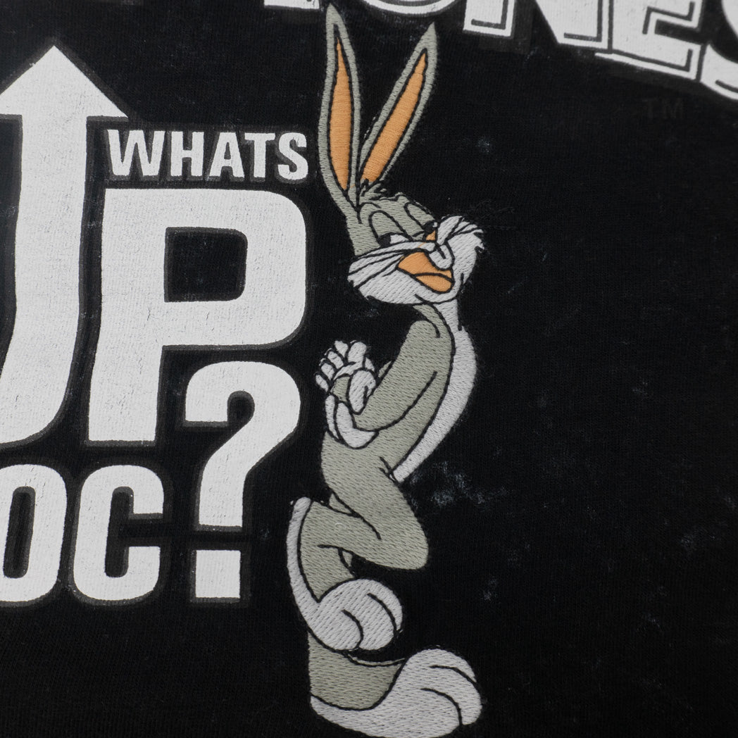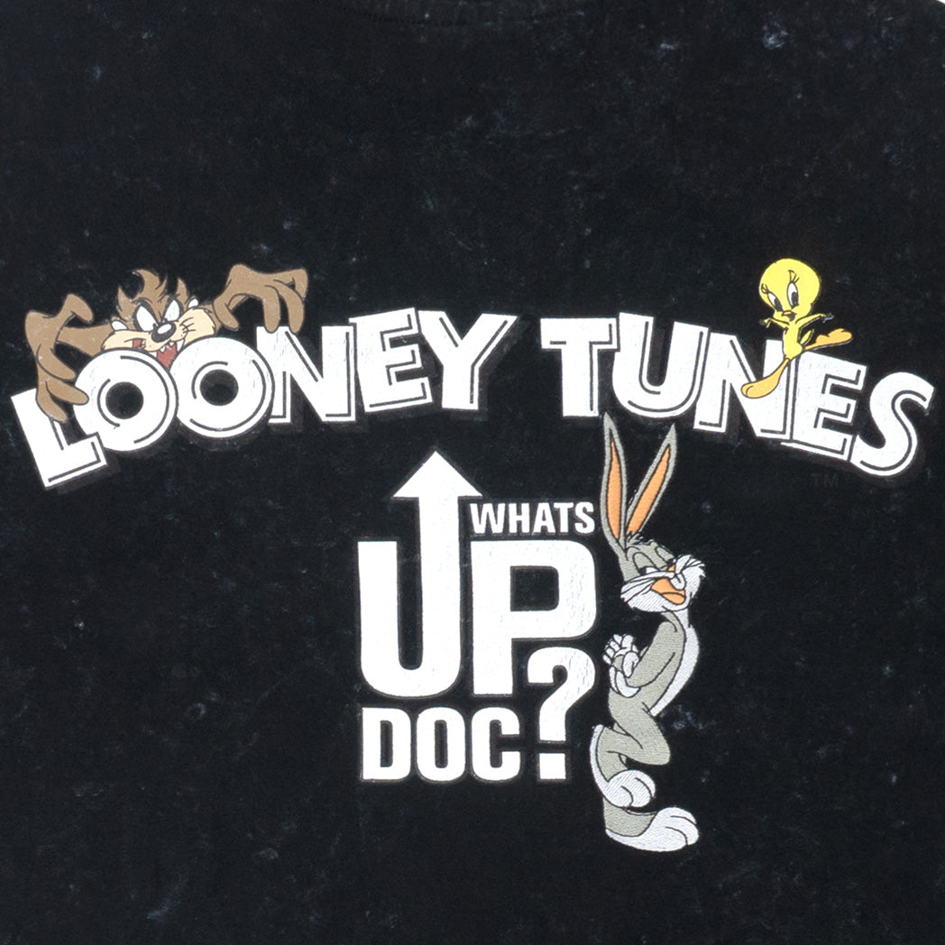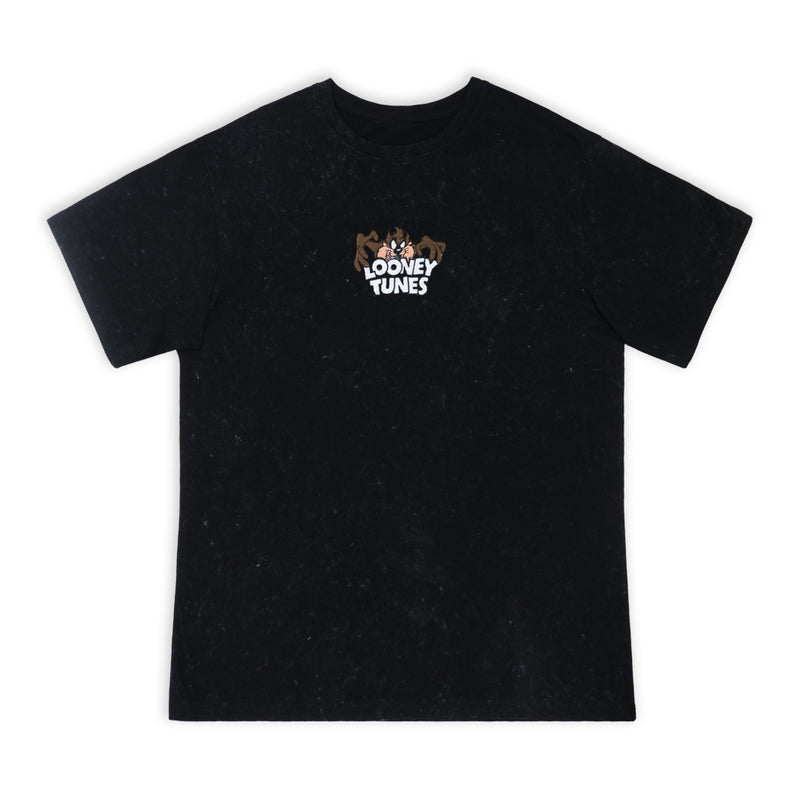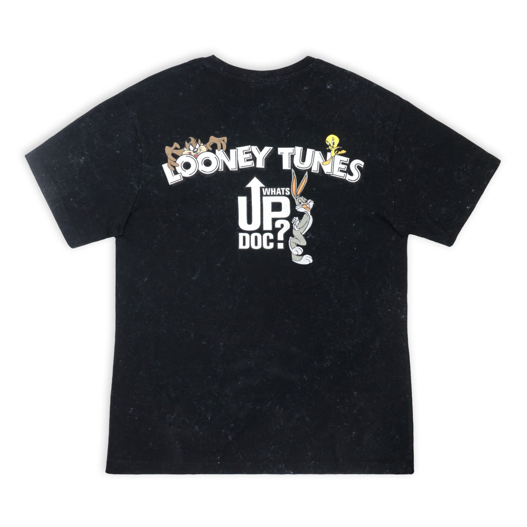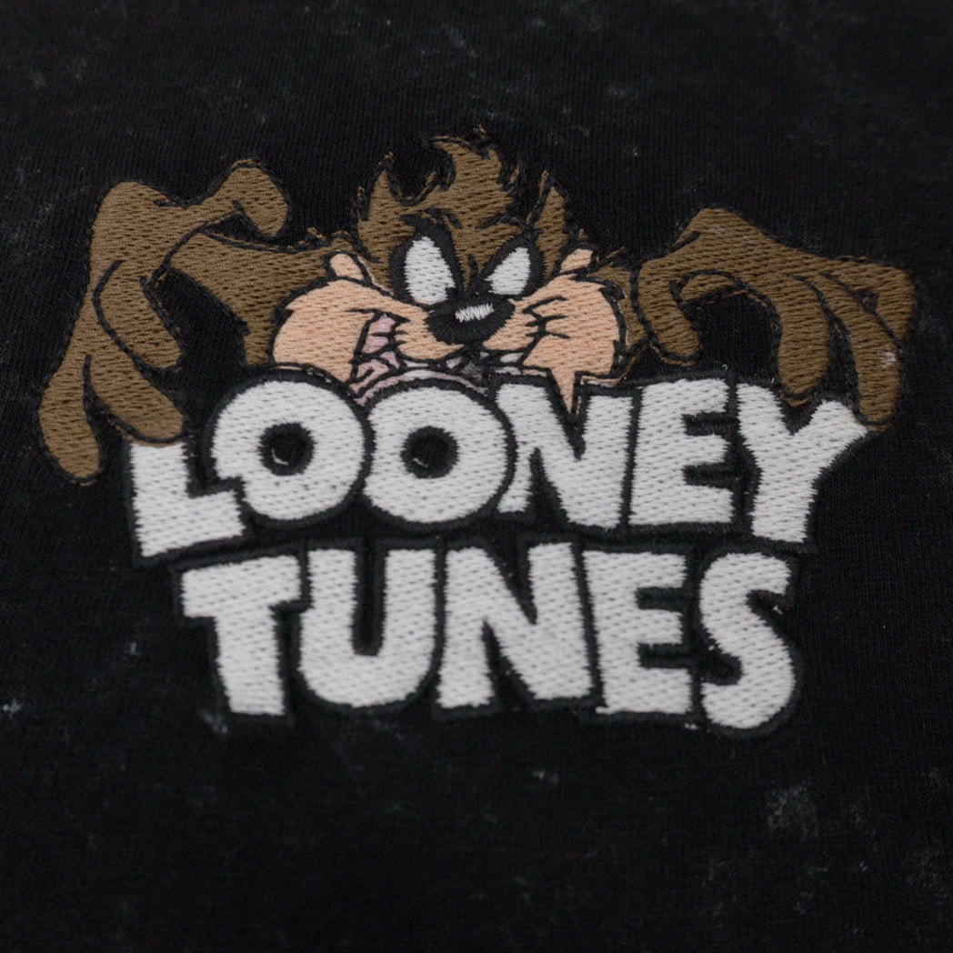 חולצת גבר בגוון שחור שטוף עם הדפס דו צדדי בשילוב רקמת Looney Tunes