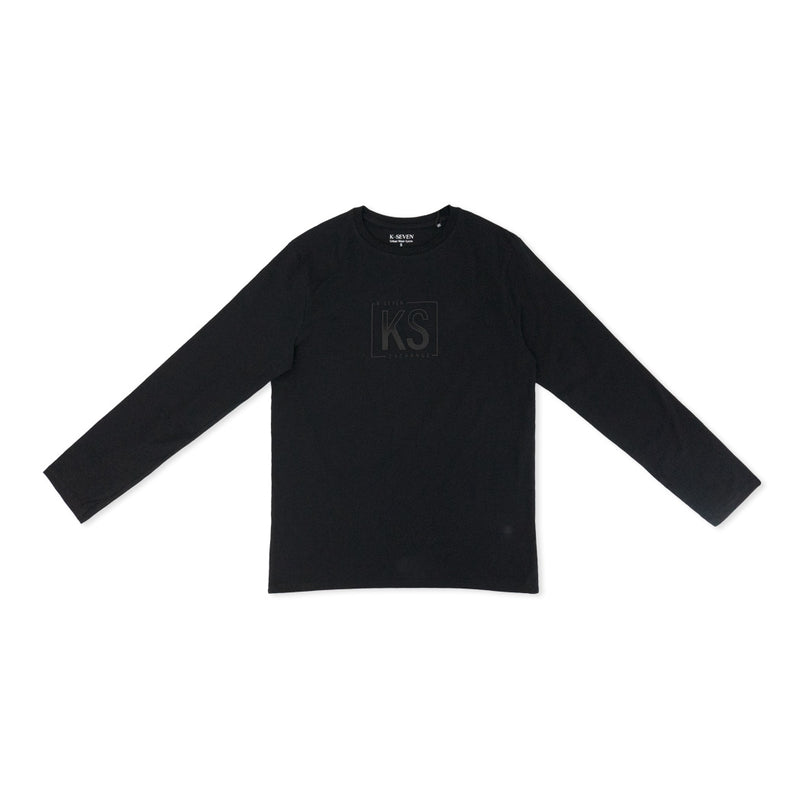 חולצת גברים דקה שחורה לעונת המעבר עם הדפס מובלט