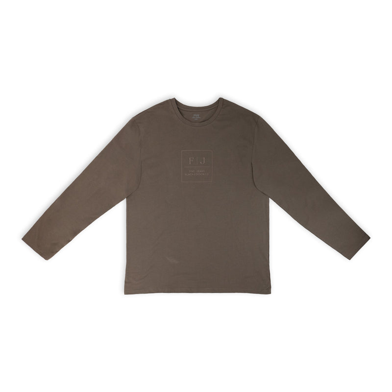 חולצת לייקרה חומה לגבר במידות גדולות עם הדפס פלסטי מובלט