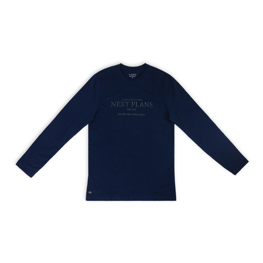חולצת לייקרה מודפסת דקה לגבר בכחול נייבי ואפור פלדה