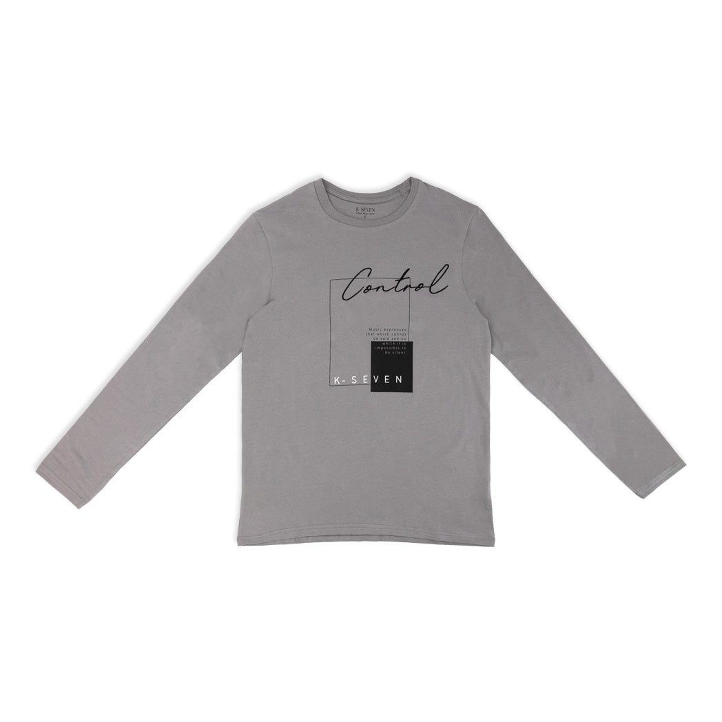 חולצת גברים דקה אפורה לעונת המעבר עם שילוב הדפס ורקמה