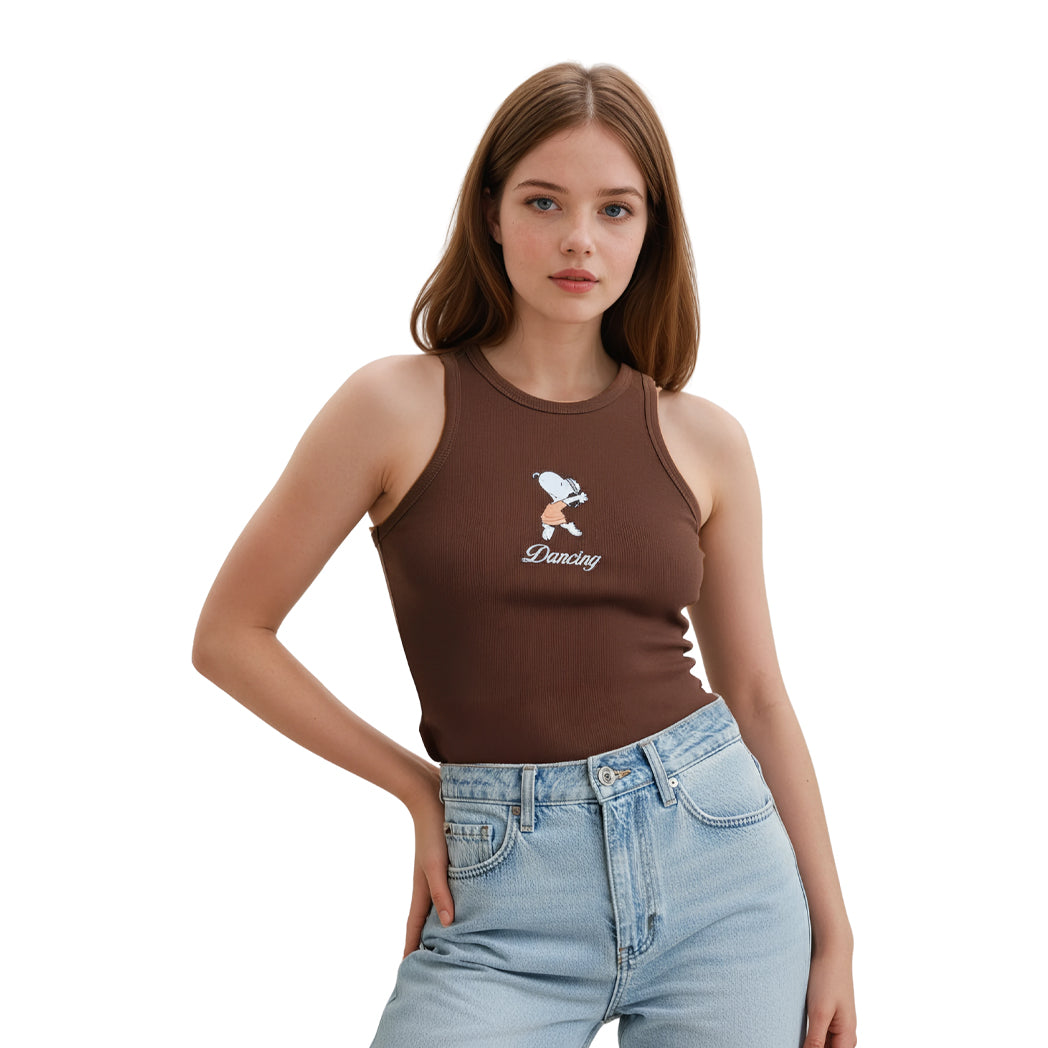גופיית ריב Peanuts עם הדפס ורקמת סנופי נשים
