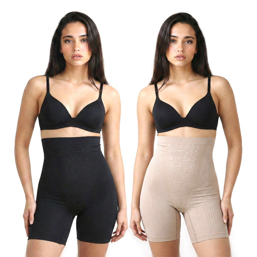זוג מחטבים איכותיים ללא תפרים לעיצוב וחיטוב הגוף - מחמיאים לגזרה הטבעית בנוחות מושלמת. מבד חזק ואלסטי, סריגה נעימה וטקסטורה מעוצבת המחטבת את הבטן, הישבן, המותניים והרגליים ונעלם למראה מתחת לבגדים.