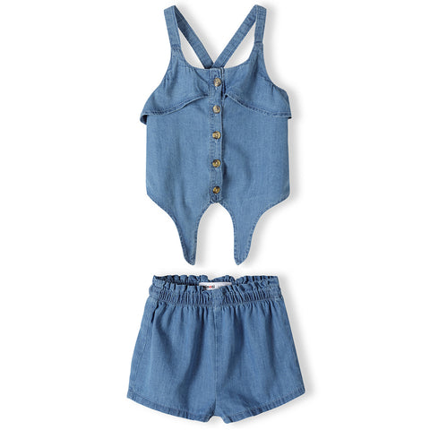 חליפת בנות מבד ריב עם חצאית קומות וגופיה עם פתח בצורת לב בגב