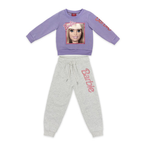 חליפת Barbie בצבעי סגול-לילך ואפור-מלאנז' לבנות