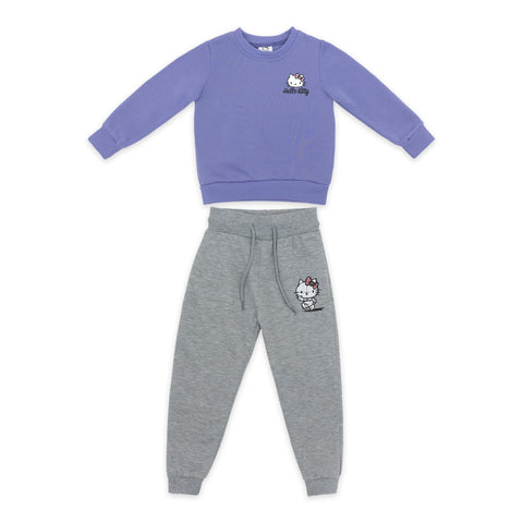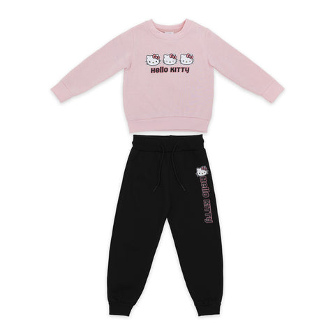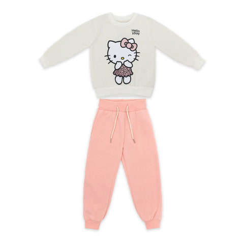חליפות בנות ורודה-אפורה לעונת מעבר בהדפס Hello Kitty