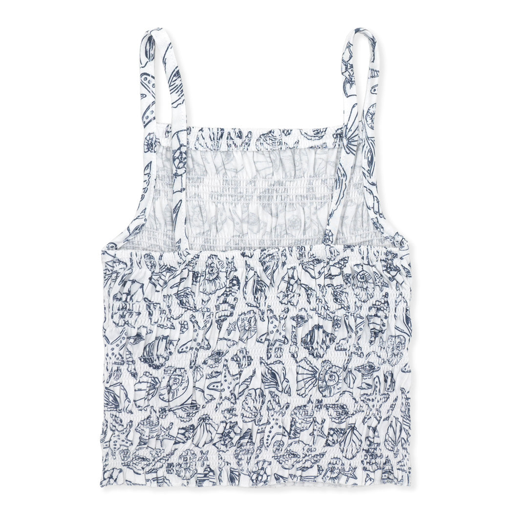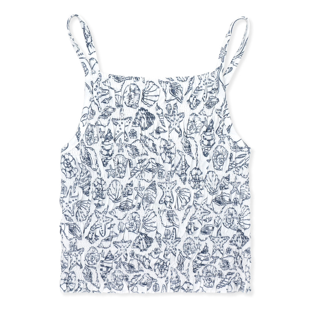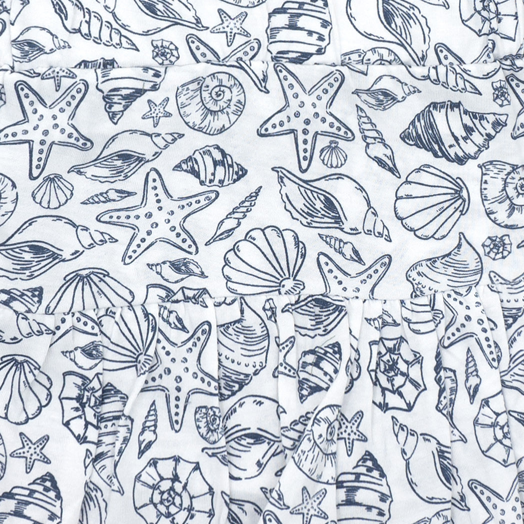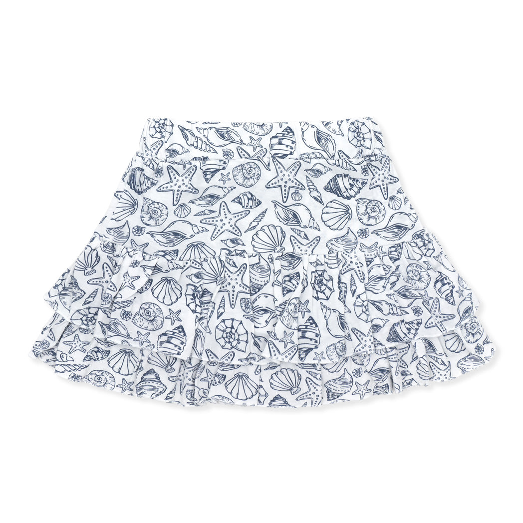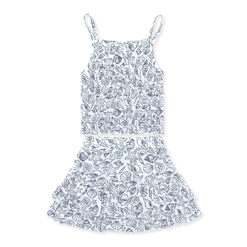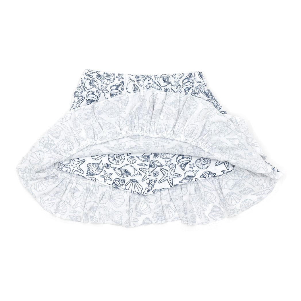 חליפת בנות לבנה והדפס צדפים אולאובר - טופ עם כיווצים וחצאית קומות עם טייץ