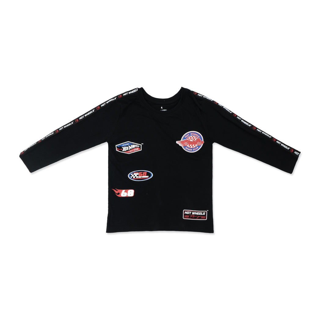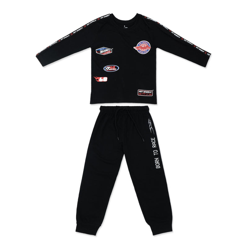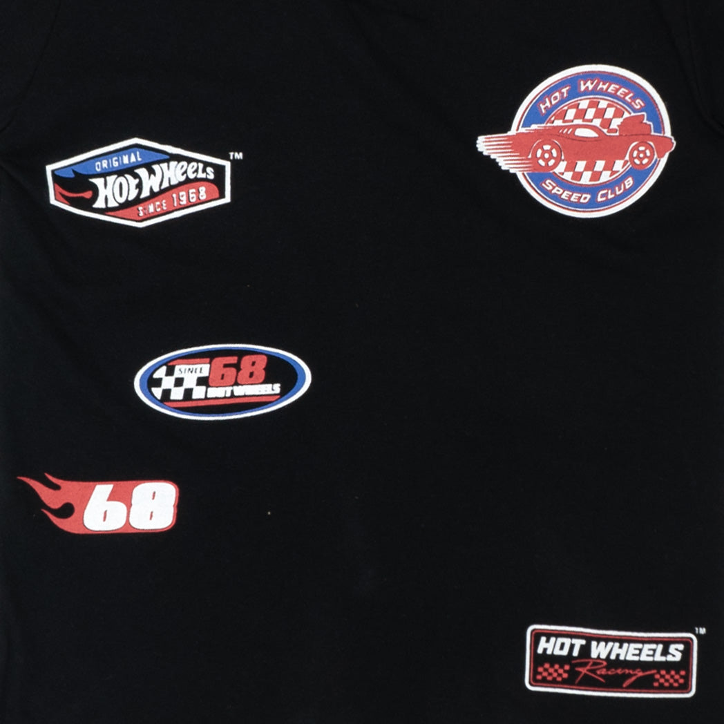 חליפת בנים שחורה לעונת מעבר עם הדפס Hot Wheels