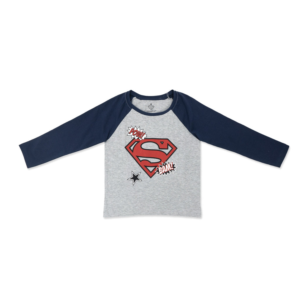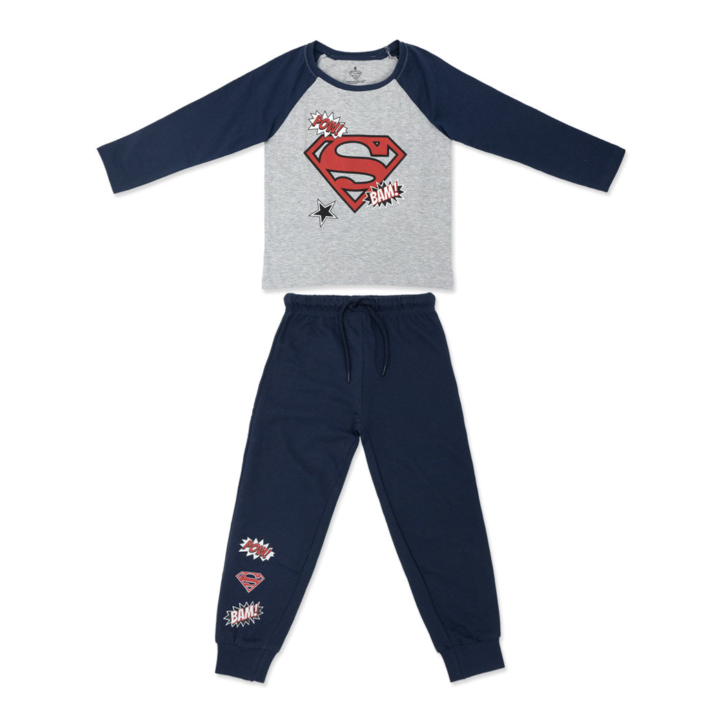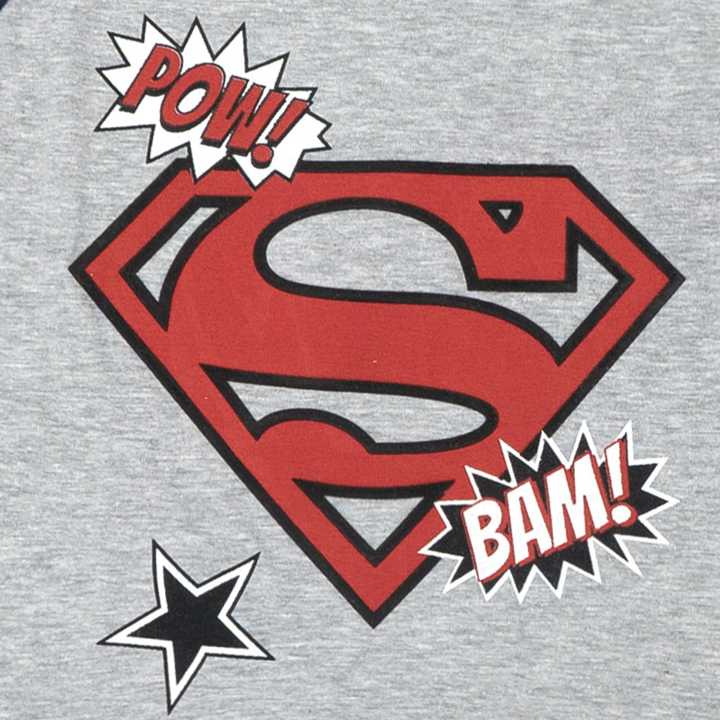 חליפת בנים אפורה-כחולה לעונת מעבר עם הדפס לוגו סופרמן