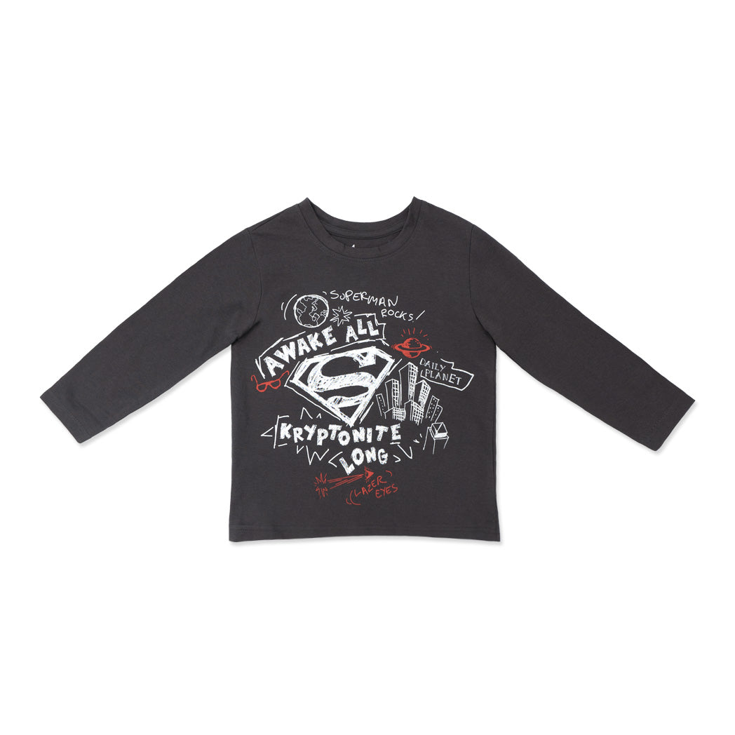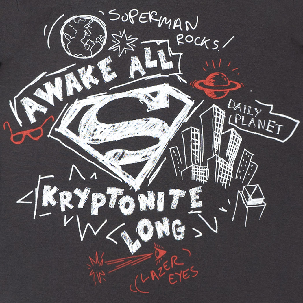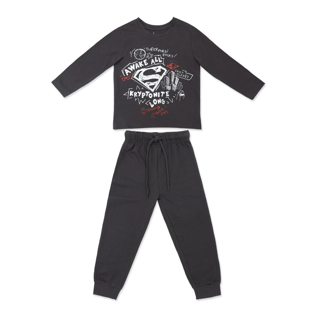 חליפת בנים אפורה לעונת מעבר עם הדפסי סופרמן