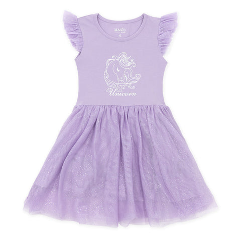 שמלת בנות בהדפסת חד קרן כסופה, וטול עם נצנצים