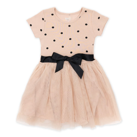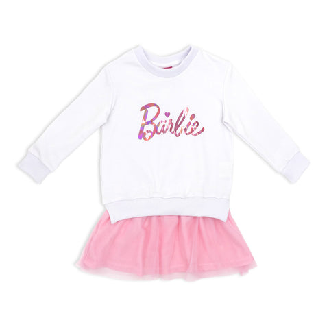 שמלת בנות עם הדפס נצנץ Barbie וחצאית טול דו שכבתית