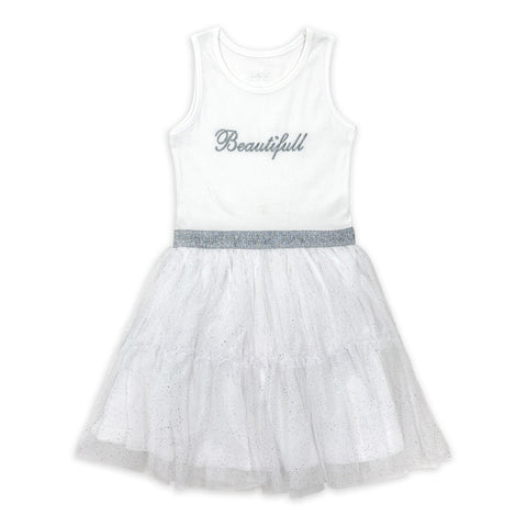 שמלת בנות לבנה עם חצאית טול והדפס נצנץ