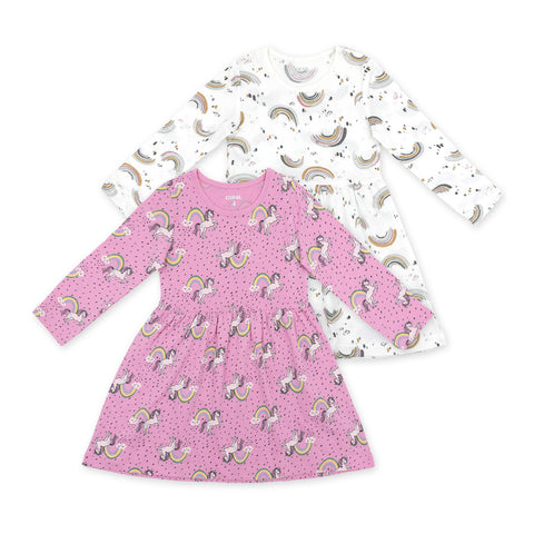 זוג חצאיות חתך מודפסות אולאובר חדי קרן ולבבות, סגולה ולבנה לילדות