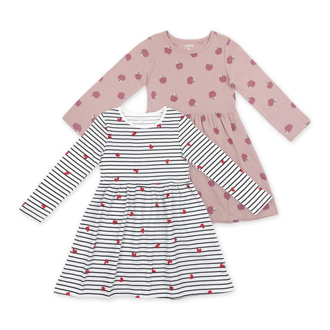 זוג שמלות בנות מבד ריב עם כתפיות ראפל בגווני פודרה וקפה