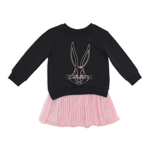 שמלת בנות עם הדפס נצנץ באגס באני וחצאית פליסה