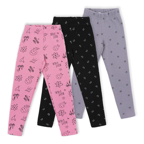שלישיית טייצים לילדות ופעוטות בגווני אפור-פלדה, ורוד וסגול