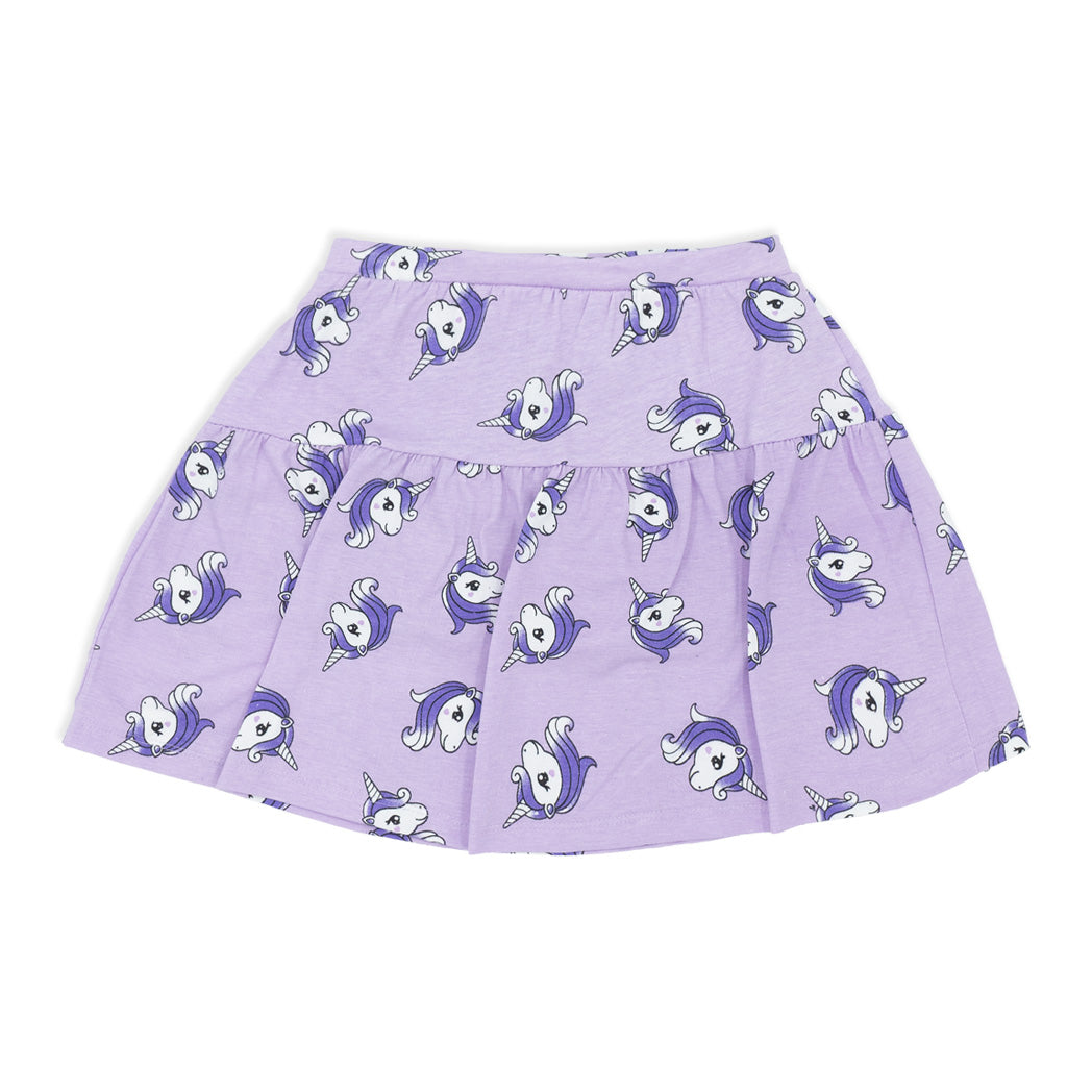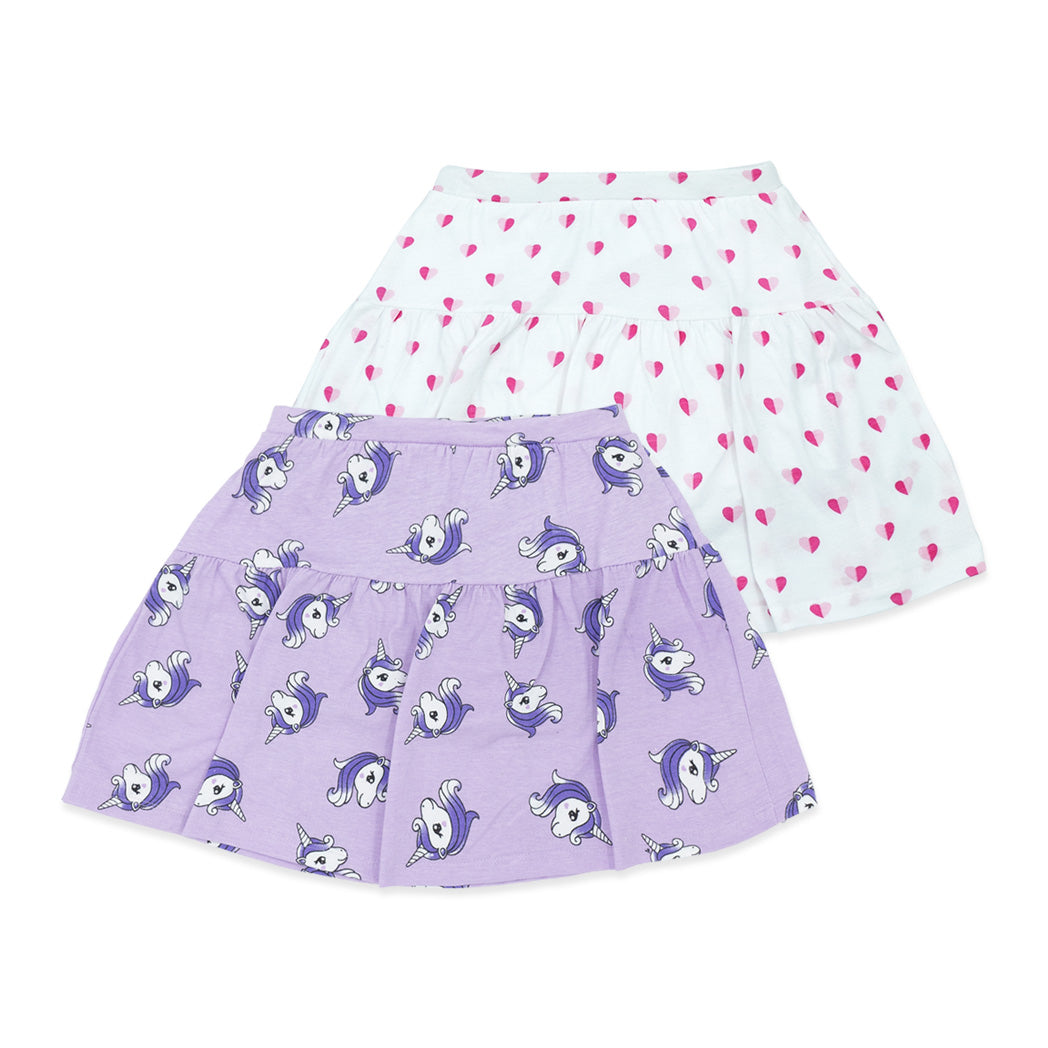 זוג חצאיות חתך מודפסות אולאובר חדי קרן ולבבות, סגולה ולבנה לילדות