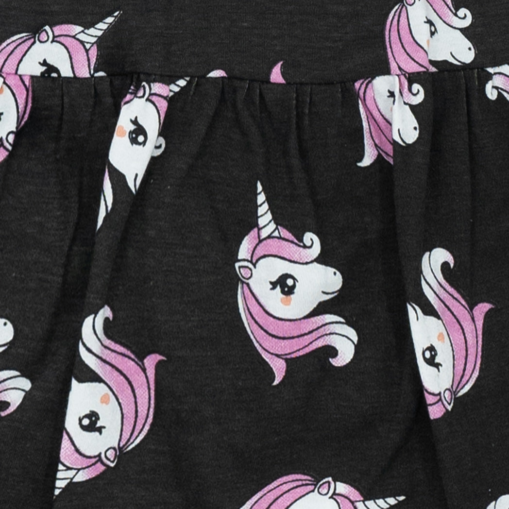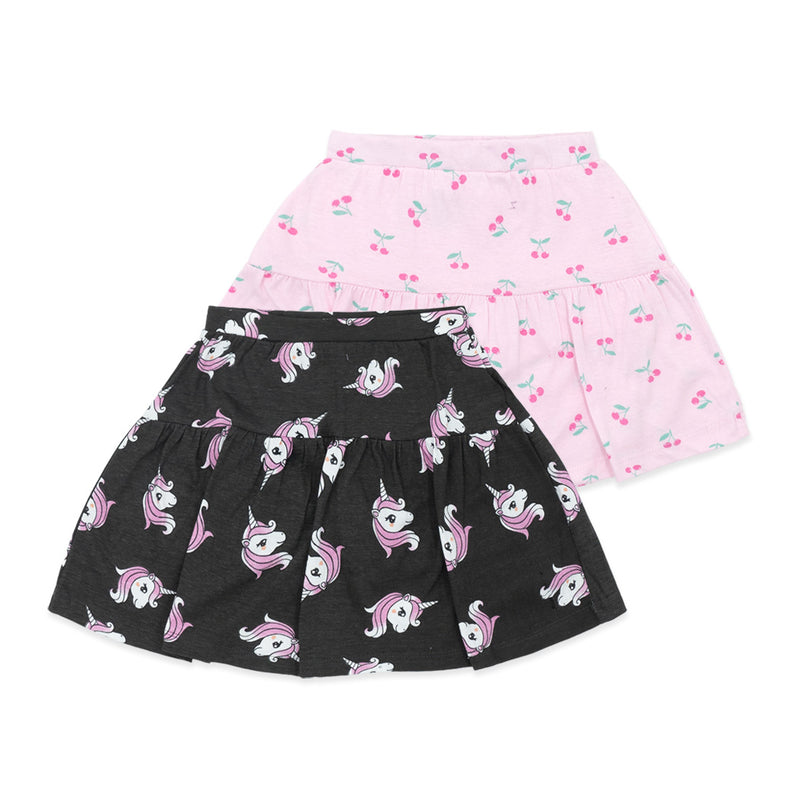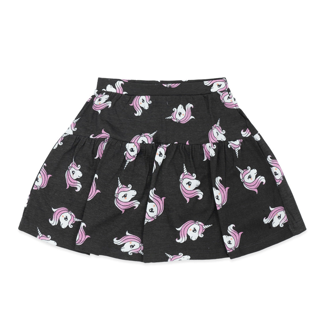 זוג חצאיות חתך בגווני ורוד ופלדה מודפסות אולאובר חדי קרן ולבבות