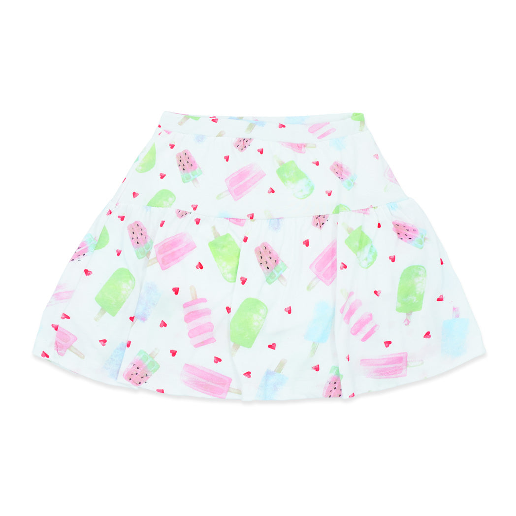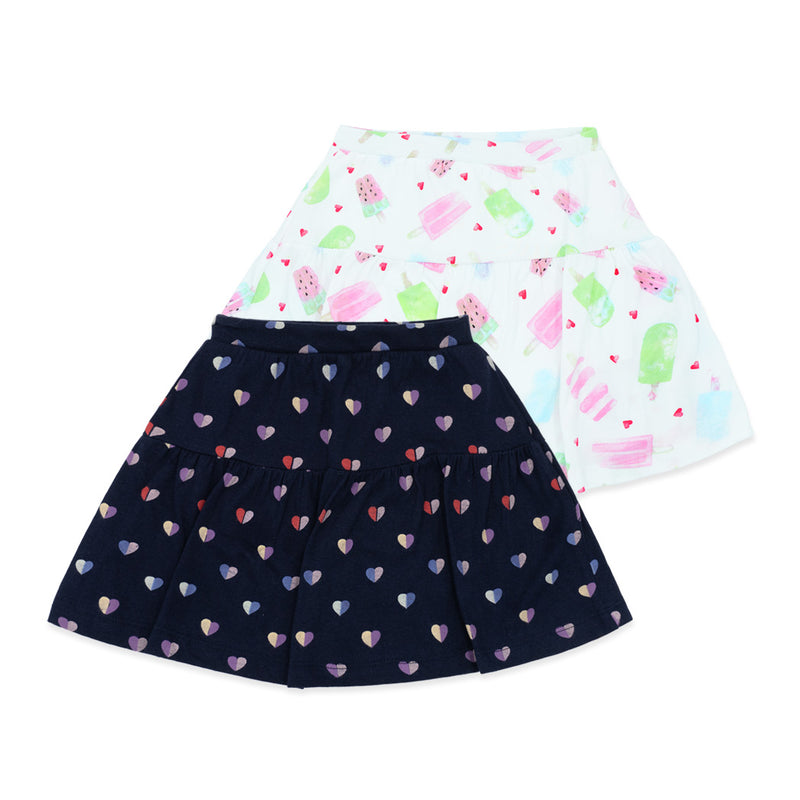 זוג חצאיות חתך לבנה וכחולה מודפסות אולאובר גלידות ולבבות