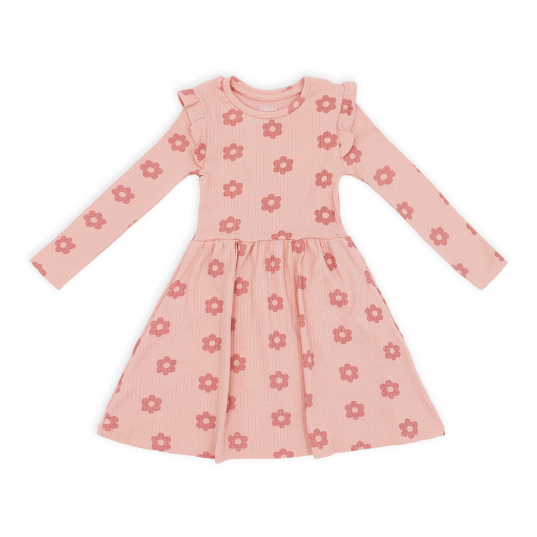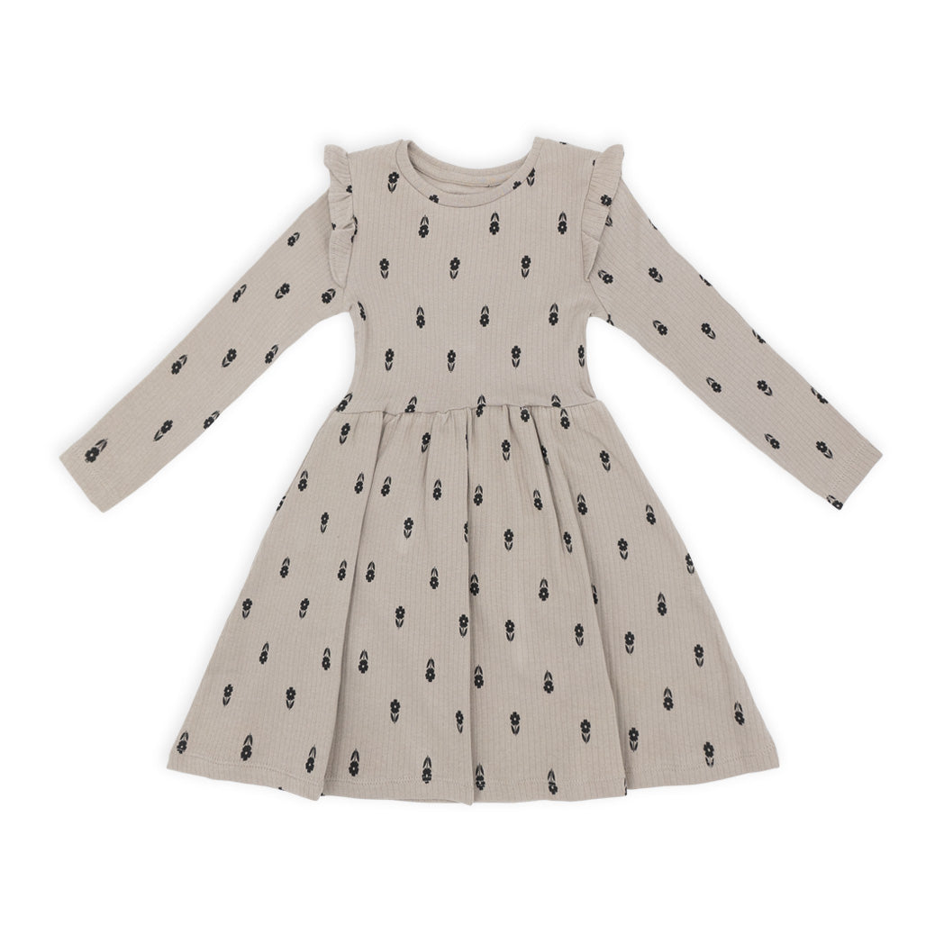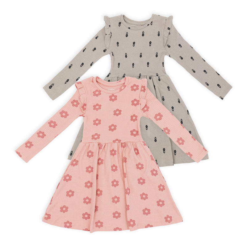 זוג שמלות בנות מבד ריב עם כתפיות ראפל בגווני פודרה וקפה