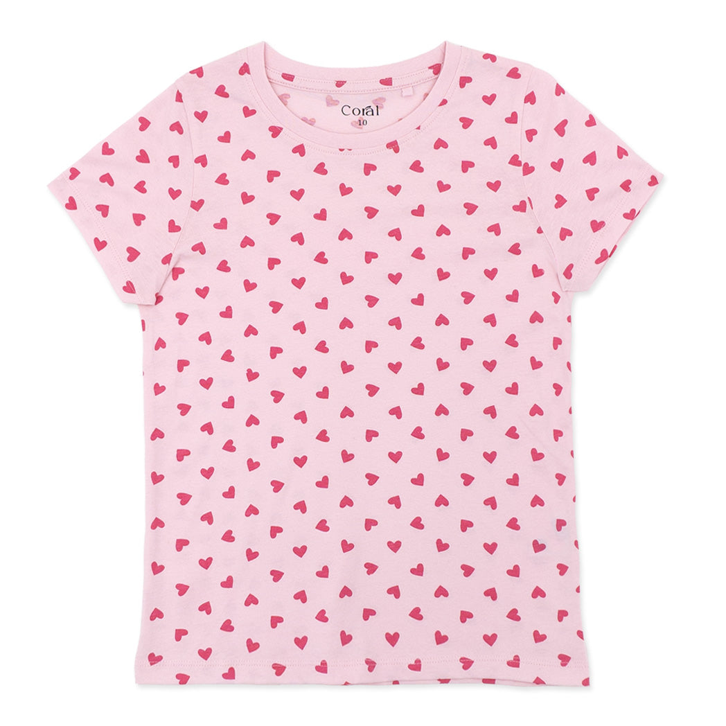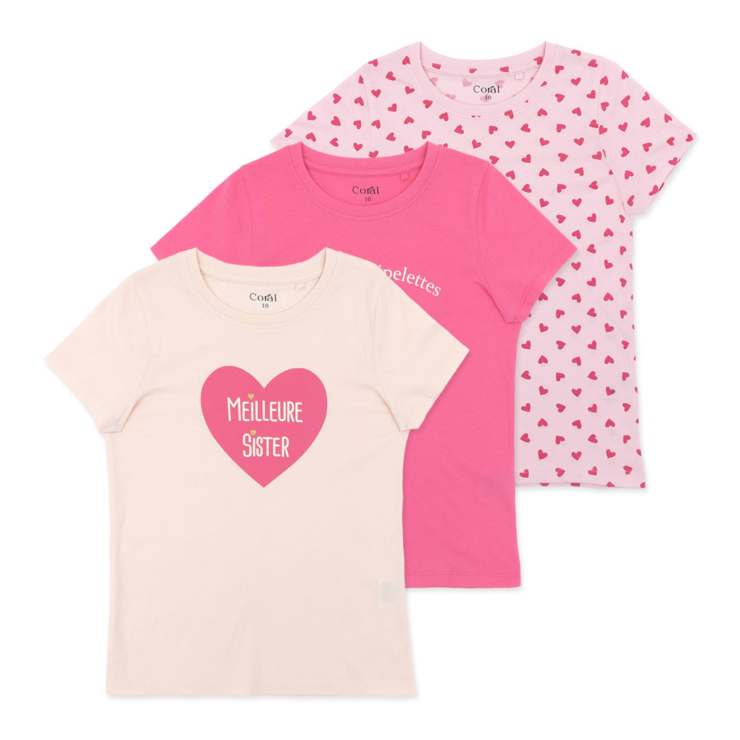 שלישיית חולצות בנות מודפסות בגווני ורוד ואפרסק