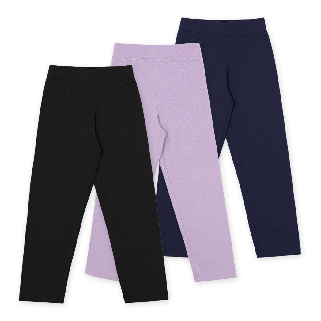 שלישיית טייצים לילדות ופעוטות בגווני סגול-לילך, שחור וכחול-נייבי