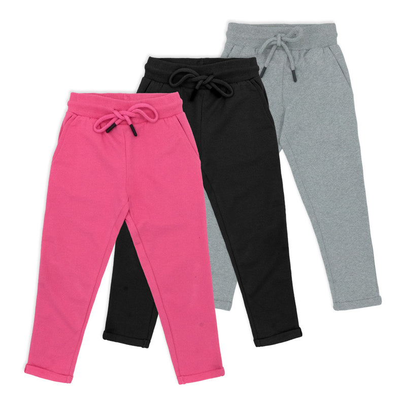 שלישיית מכנסי פרנץ' טרי לילדות בגווני פוקסיה, אפור מלאנז' ושחור